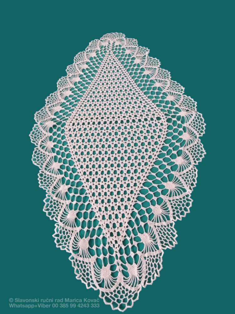 Gotovi (odmah dostupan za narudžbu) heklani milje dimenzija 33x65 cm. Uzorak prikazan na slici.